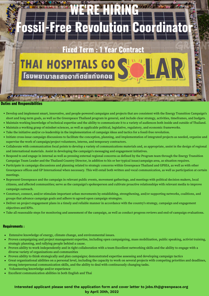 Contact : jobs.th@greenpeace.org