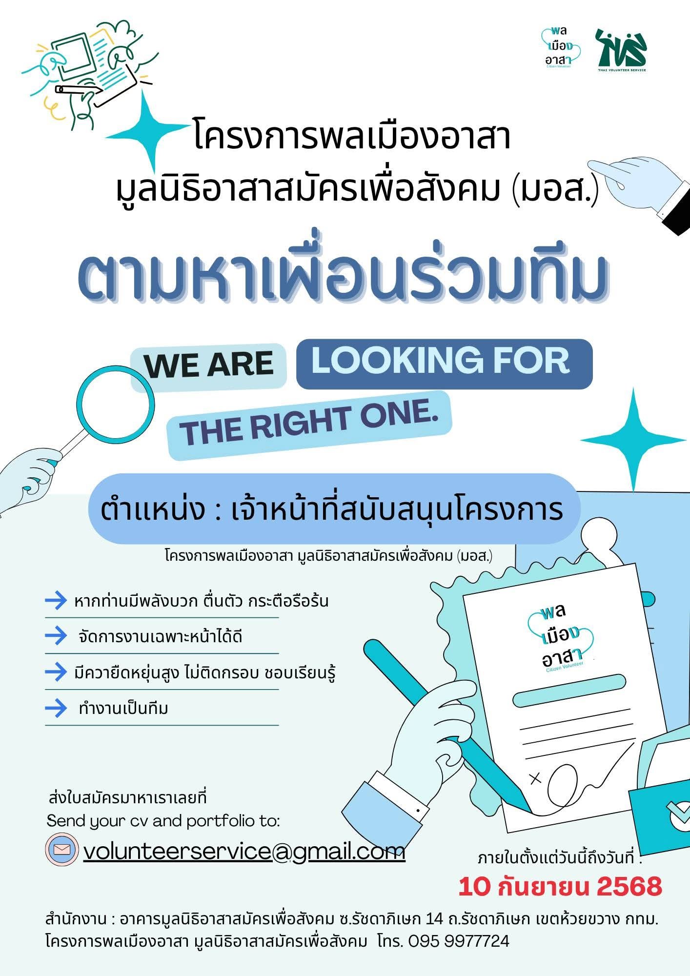 รับสมัคร เพื่อนร่วมทีมโครงการพลเมืองอาสา